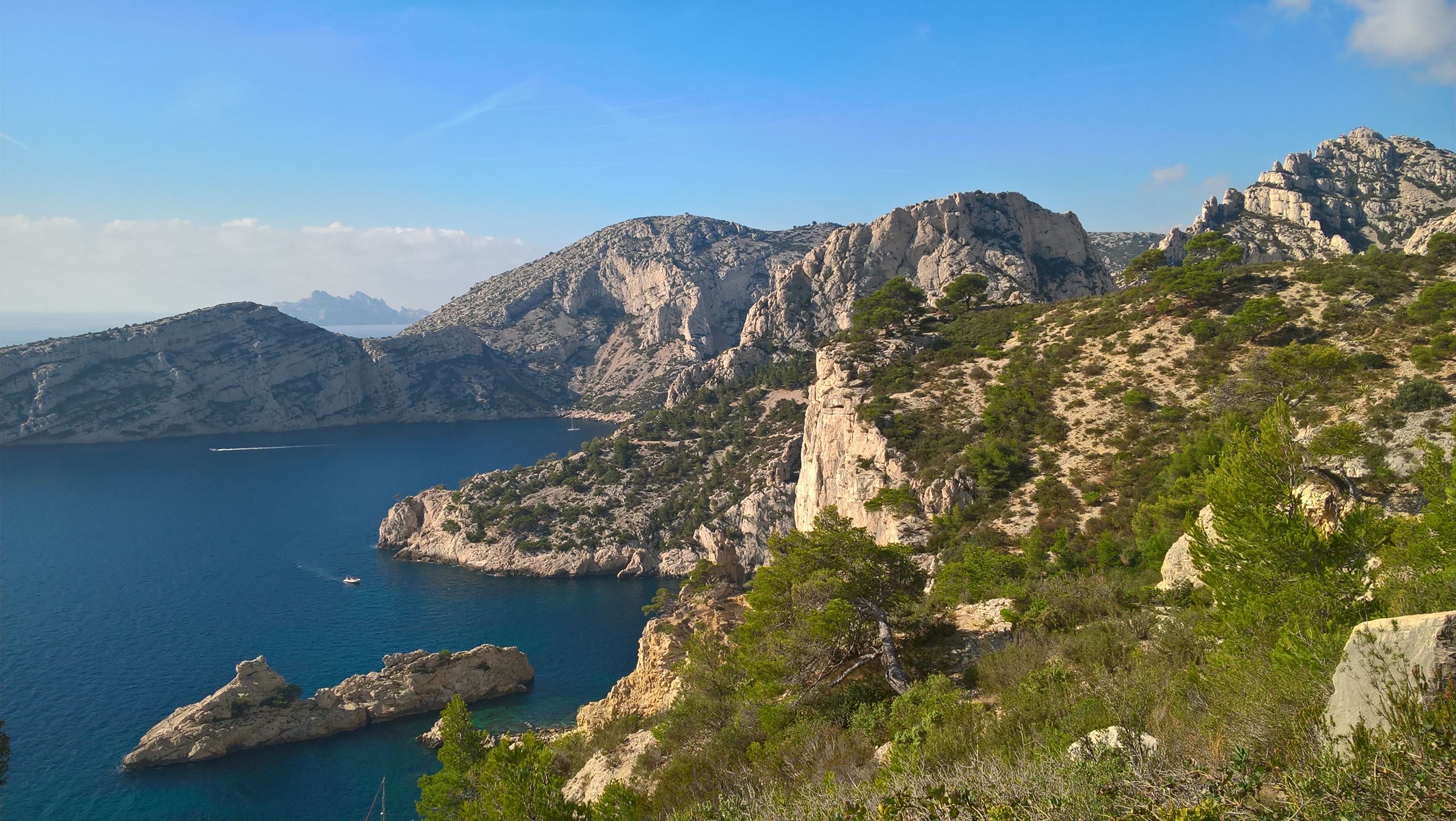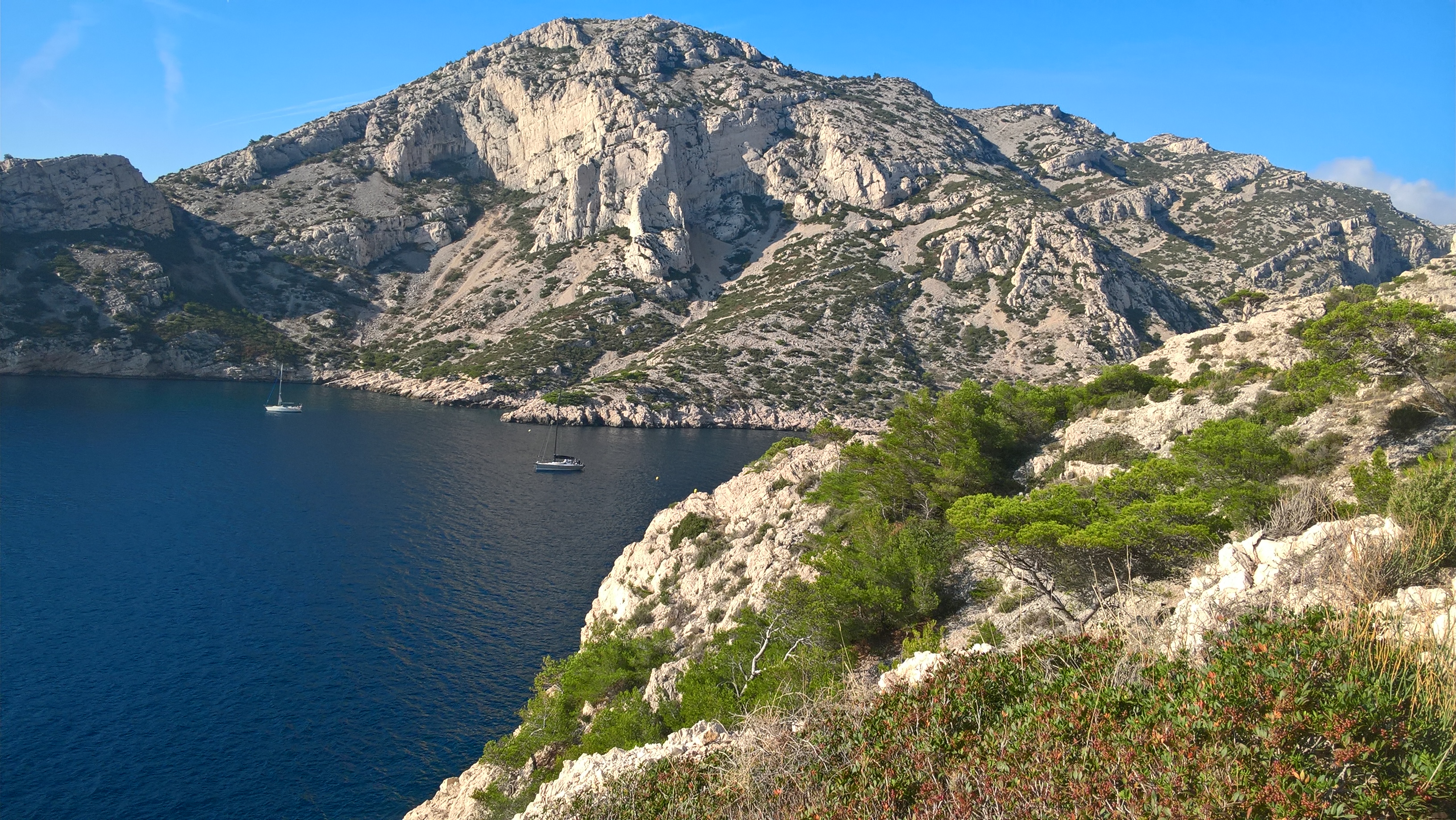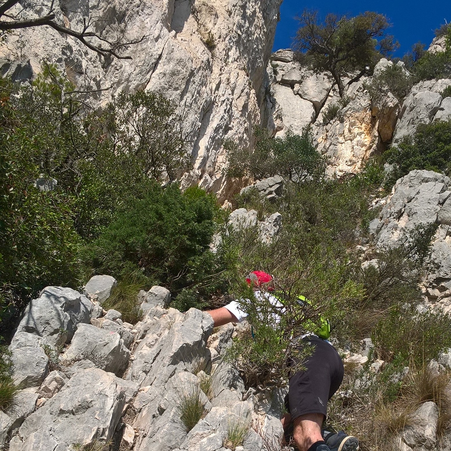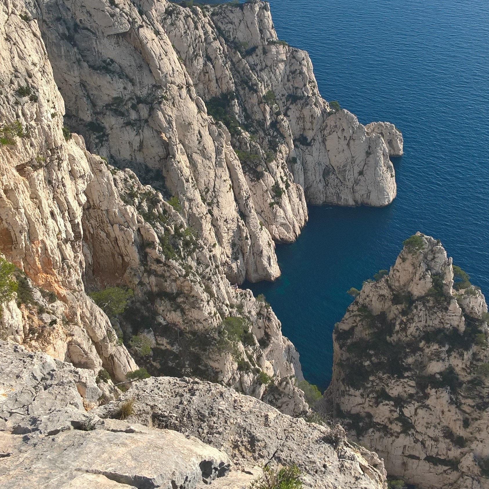 Demi tour et remontée vers le portalet d’ En Vau pour faire le tour de cette calanque et replonger vers notre nouvel objectif: la calanque de Port Pin. Remontée de Port Pin et redescente vers la calanque de Port Miou, dernière étape avant Cassis.