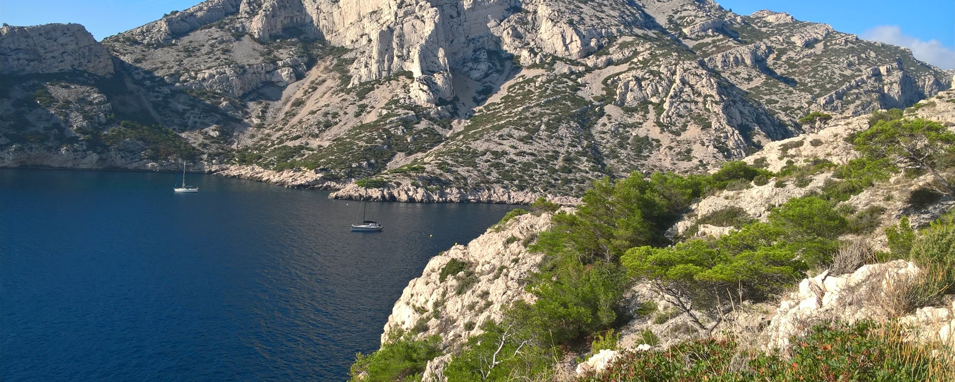 Départ des baumettes à Marseille Direction le col de Morgiou et plongée dans la calanque du même nom. On longe le bord de mer avec des montées et des descentes jusqu’au Cap de Sugiton avant de descendre dans la calanque éponyme.