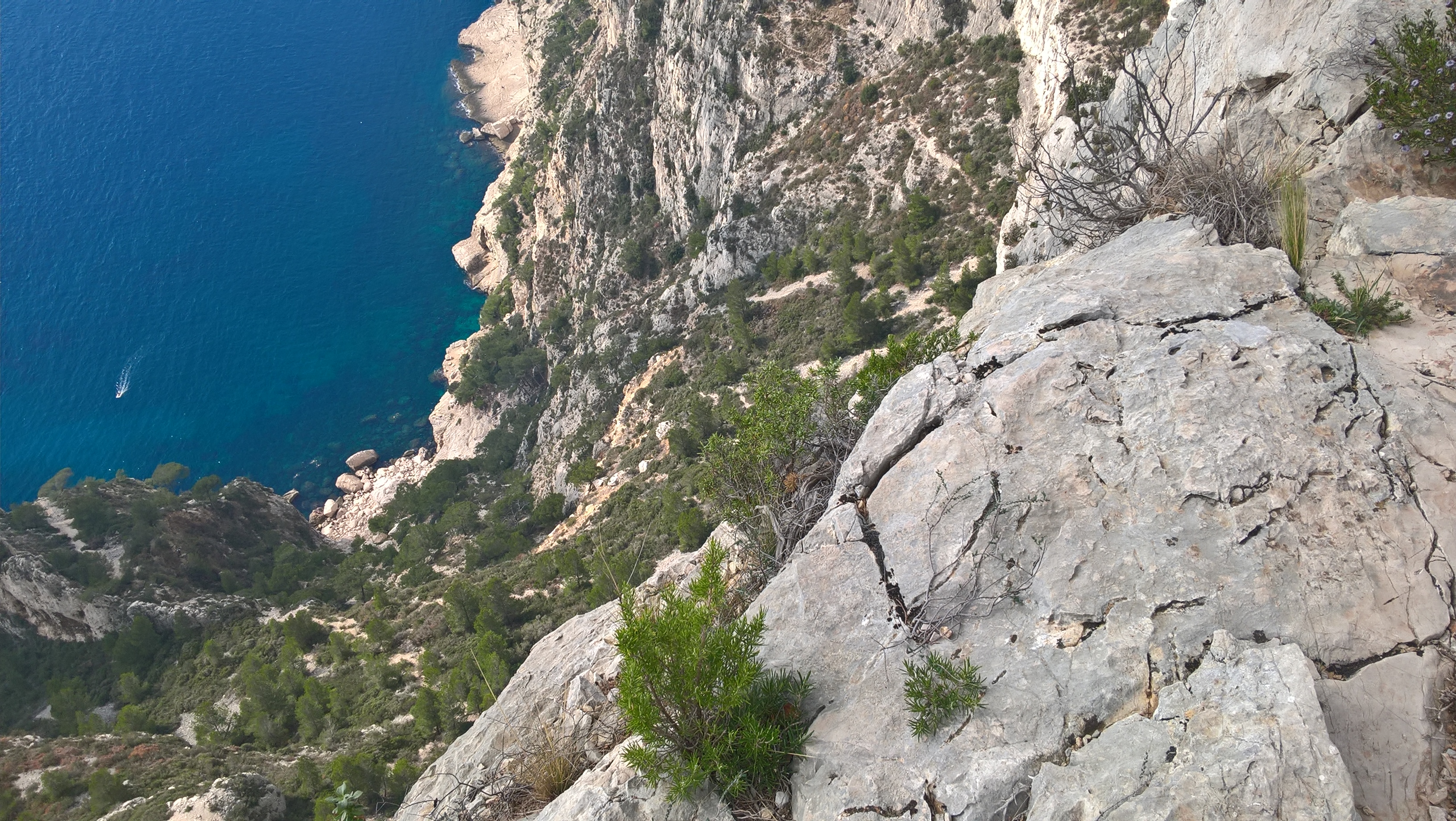 On sort sur les falaise de Devenson et on redescend dans un vallon avant de remonter vers le col de l’Oule puis on plonge vers le vallon d’ En Vau avant de déboucher dans cette superbe calanque d’ En Vau.