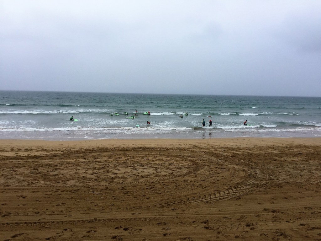 Le ciel est gris ce matin-là, il n’y a pas beaucoup de monde sur la plage.