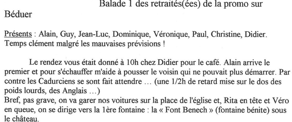 Merci à Didier pour l’organisation de ces belles rerouvailles et à son compte-rendu pour le blog, ce qui m’a évité de « travailler »! Merci à Loulou pour sa contribution poétique. Merci à tous les participants pour leur contribution photos. Merci à Rita pour son dynamisme.