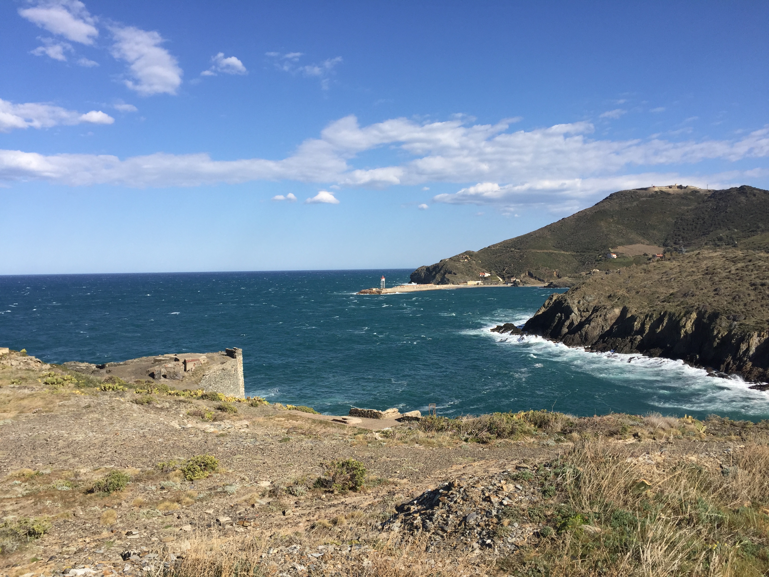 Vous longez les anciennes batteries qui protégeaient la côte puis poursuivez jusqu’au Cap Gros et de là, redescendez jusqu’au port de … Port Vendres.