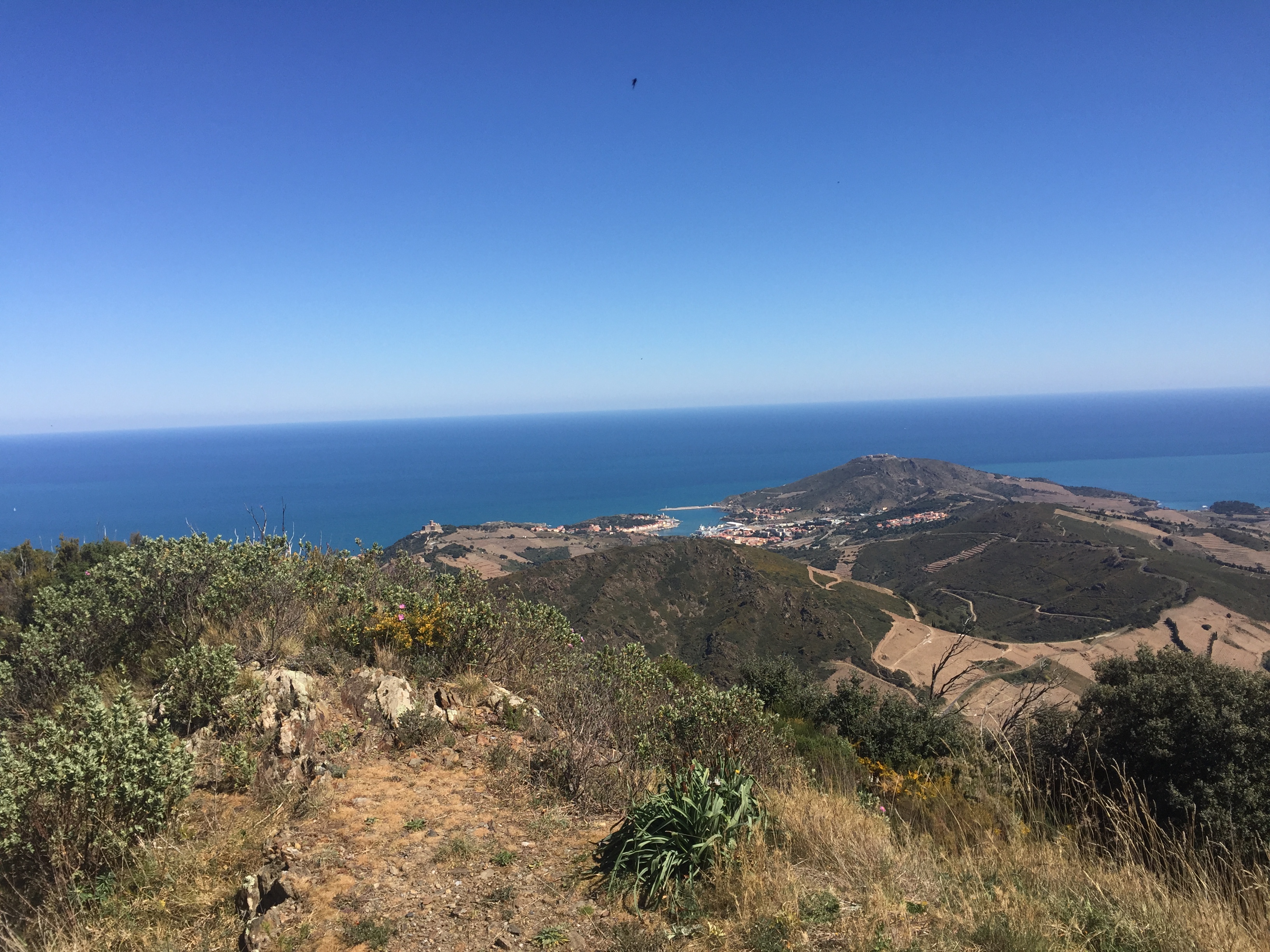 Après trois heures de marche, un petit casse-croûte est le bienvenu. Il ne reste plus qu’à redescendre à Collioure. Soit vous rejoignez le Col de Mollo par la D86 en passant par la batterie 500 ( c’est son nom ) soit vous faites demi tour.