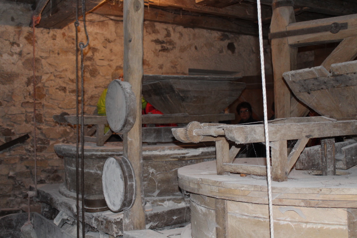 Visite guidée instructive et très sympa puisqu’on a droit à un peu de vraie farine du moulin et pour finir quelques noix et une « prune » maison!